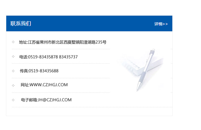 傳真:0519-83435688    郵編:213135    網址:WWW.czjhgj_com.hytyi.com    電子郵箱:JH@czjhgj_com.hytyi.com
